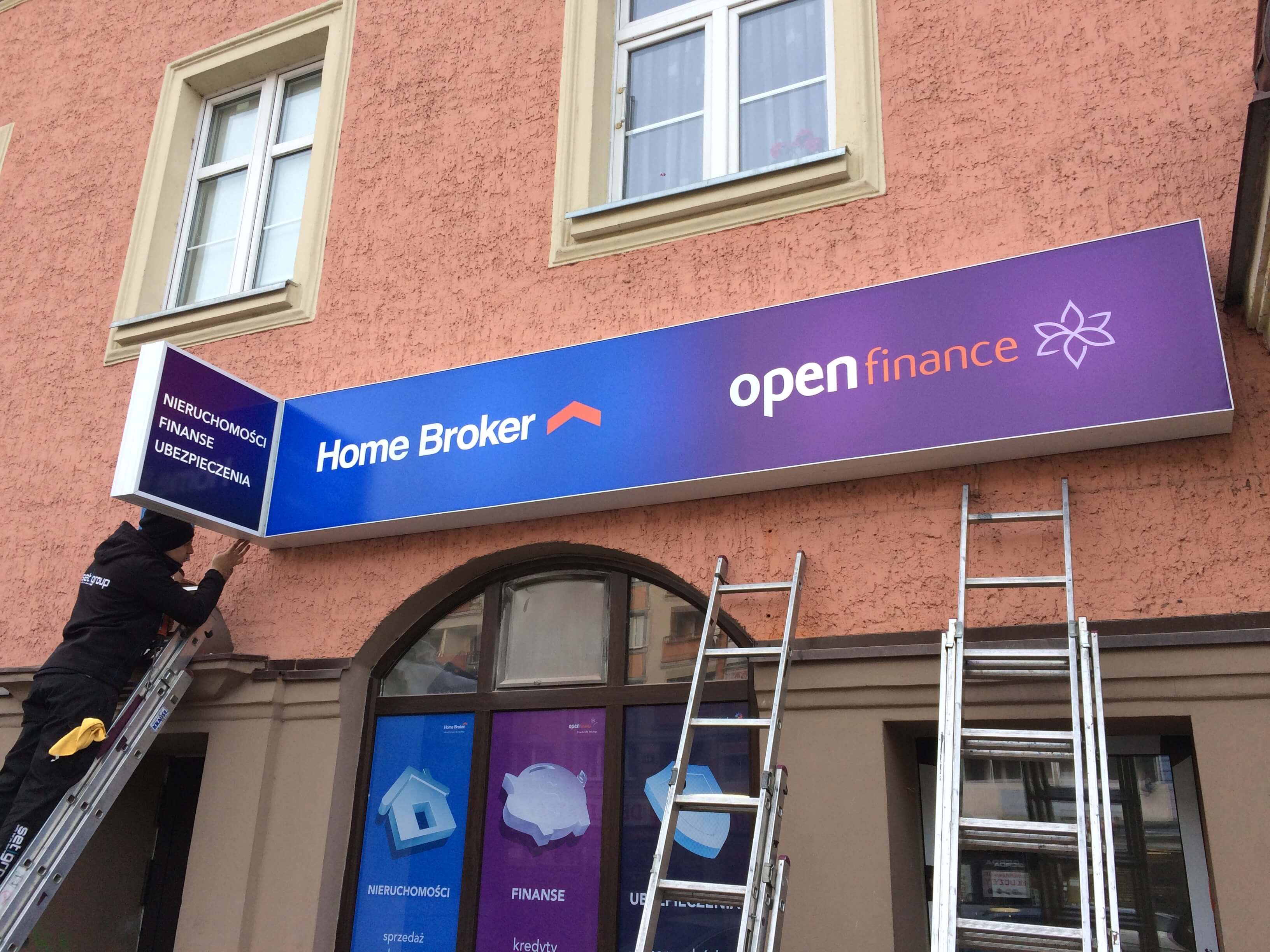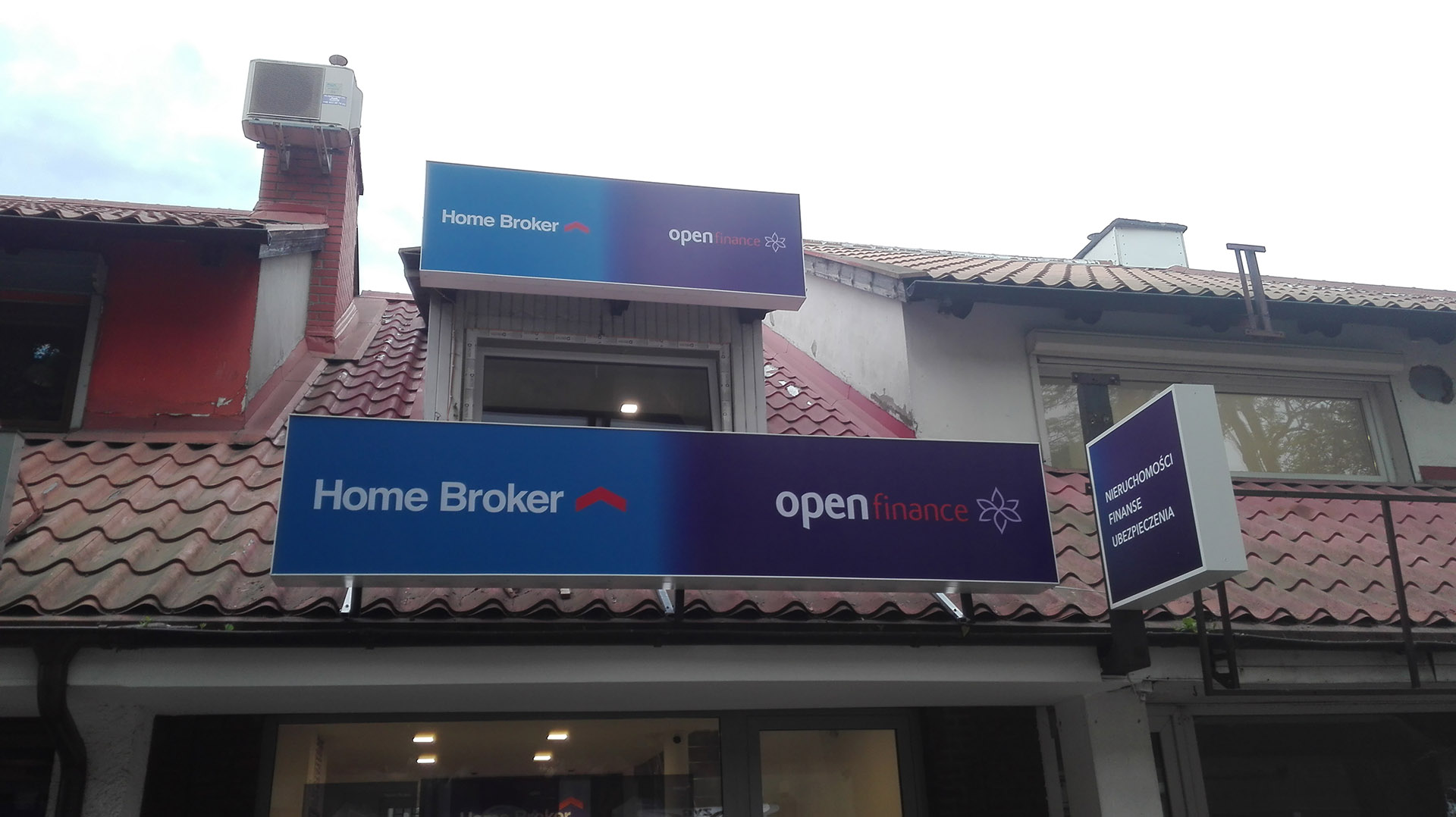 Open Firance jest jedną z największych firm doradztwa finansowego w Polsce od wielu lat. Do naszych zadań należało wykonanie wizji lokalnej lub przeprowadzenie wywiadu z franczyzobiorcą , na podstawie których wykonywaliśmy aranżacje placówki wewnątrz jak również oznakowanie placówki na zewnątrz. Kasetony, semafory, aplikacje z foli OWV, wydruki wielkoformatowe tablice produktowe z plexy, będące elementami każdej z placówek zostały wykonane w najwyższej jakości adekwatnej do przeznaczonego budżetu z uwzględnieniem ówczesnej standaryzacji znaku Open Finance & Homme Broker. Dzięki sprawnej organizacji w niespełna pół roku, oznakowaliśmy sieć nowo powstałych placówek franczyzowych Open Finance na terenie całej Polski.