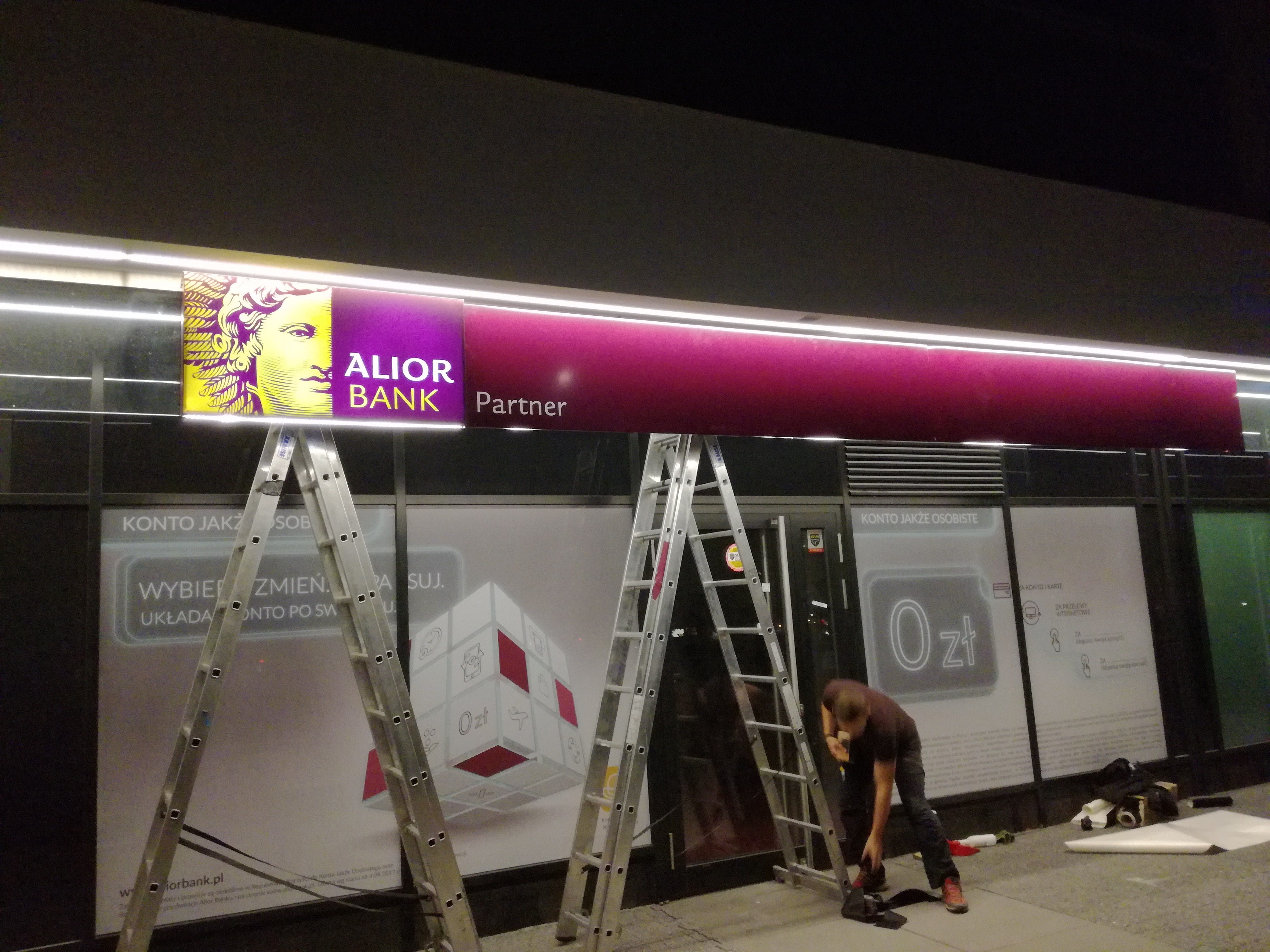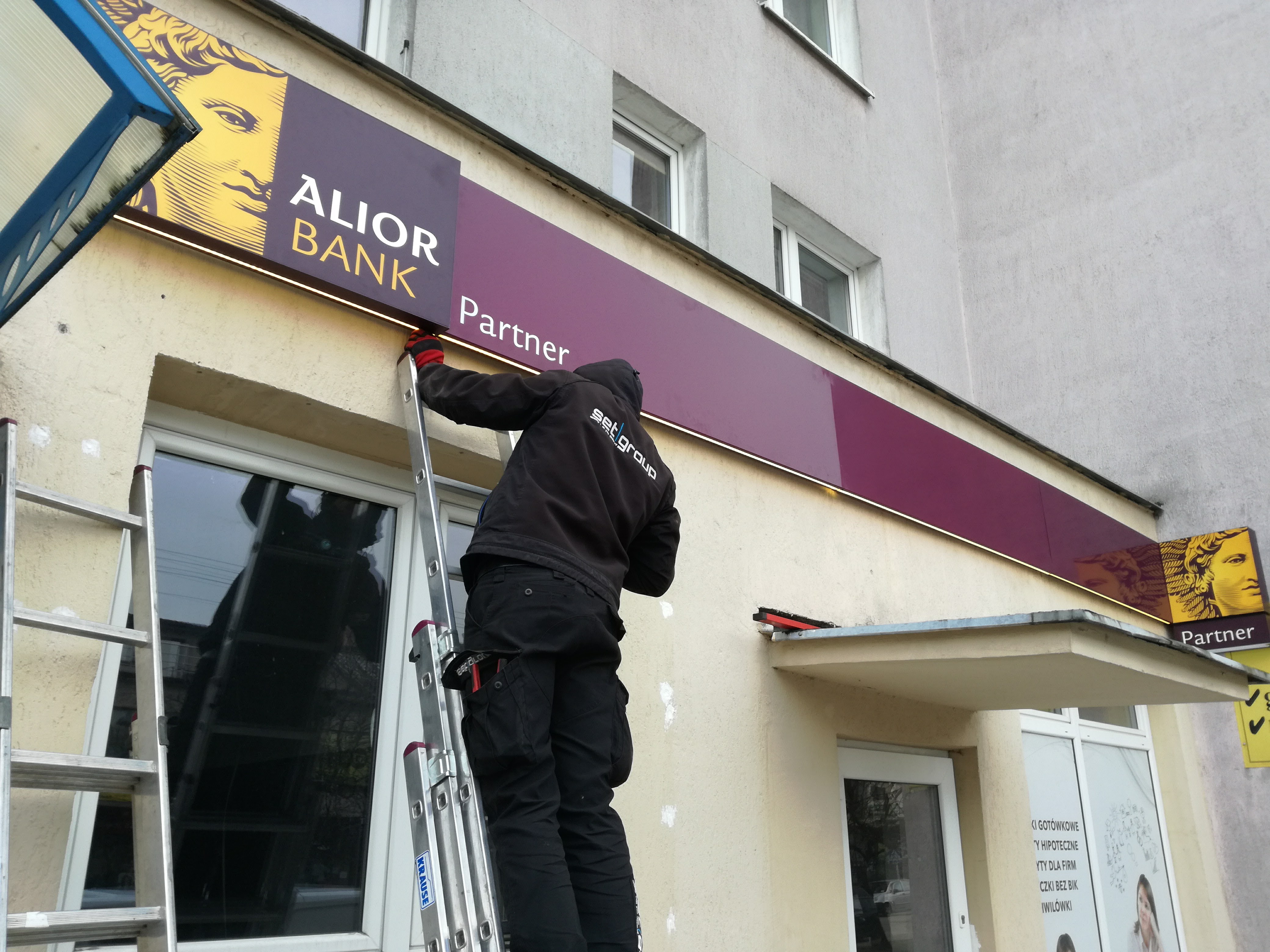 W ramach wieloletniej współpracy z Alior Bankiem nasza firma odpowiedzialna była za organizację, koordynację, produkcję oraz montaż logo Alior Banku na wszystkich placówkach franczyzowych Alior Banku w kraju. W ciągu 9 lat współpracy oznakowaliśmy przeszło 1000 placówek na terenie całej Polski. Wieloletnia współpraca zaowocowała spójną identyfikacją wizualną Brandu z zunifikowanymi rozwiązaniami montażu.