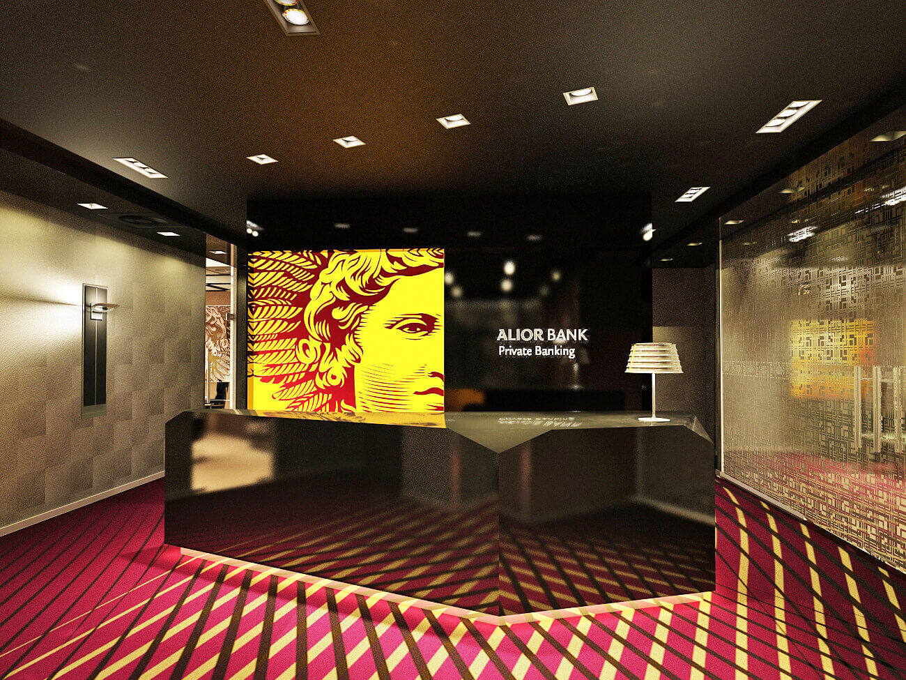Nasz klient powierzył nam również wykonanie oznakowania 5 stref Private Banking Alior Banku z 6 w całej Polsce. Projekt ten obejmował prace od fazy koncepcyjnej aż po prace wykonawcza całej konstrukcji wraz ze wszystkim elementami , ściany logo-typowej będącej wizytówką niezwykle prestiżowych stref Klienta VIP. Konstrukcje te były kunsztownie dobraną symbiozą esencji dobrego smaku oraz nowoczesnego designu . Połączenie szkła , polerowanego aluminium , stali niklowanej , oraz lakierowanego na wysoki połysk mdfu dały niesamowity efekt wizualny , podkreślający charakter i dostojność tych miejsc. Oprócz ściany logo-typowej naszej firmie zostały powierzone inne elementy oznakowania banku i charakterystyczne logotypy wykonane z frezowanego mdfu lakierowanego na wysoki połysk , foli lustrzanej , szronionej etc.. Wykonaliśmy również wszystkie wykończenia z blachy polerowanej wewnątrz placówek .